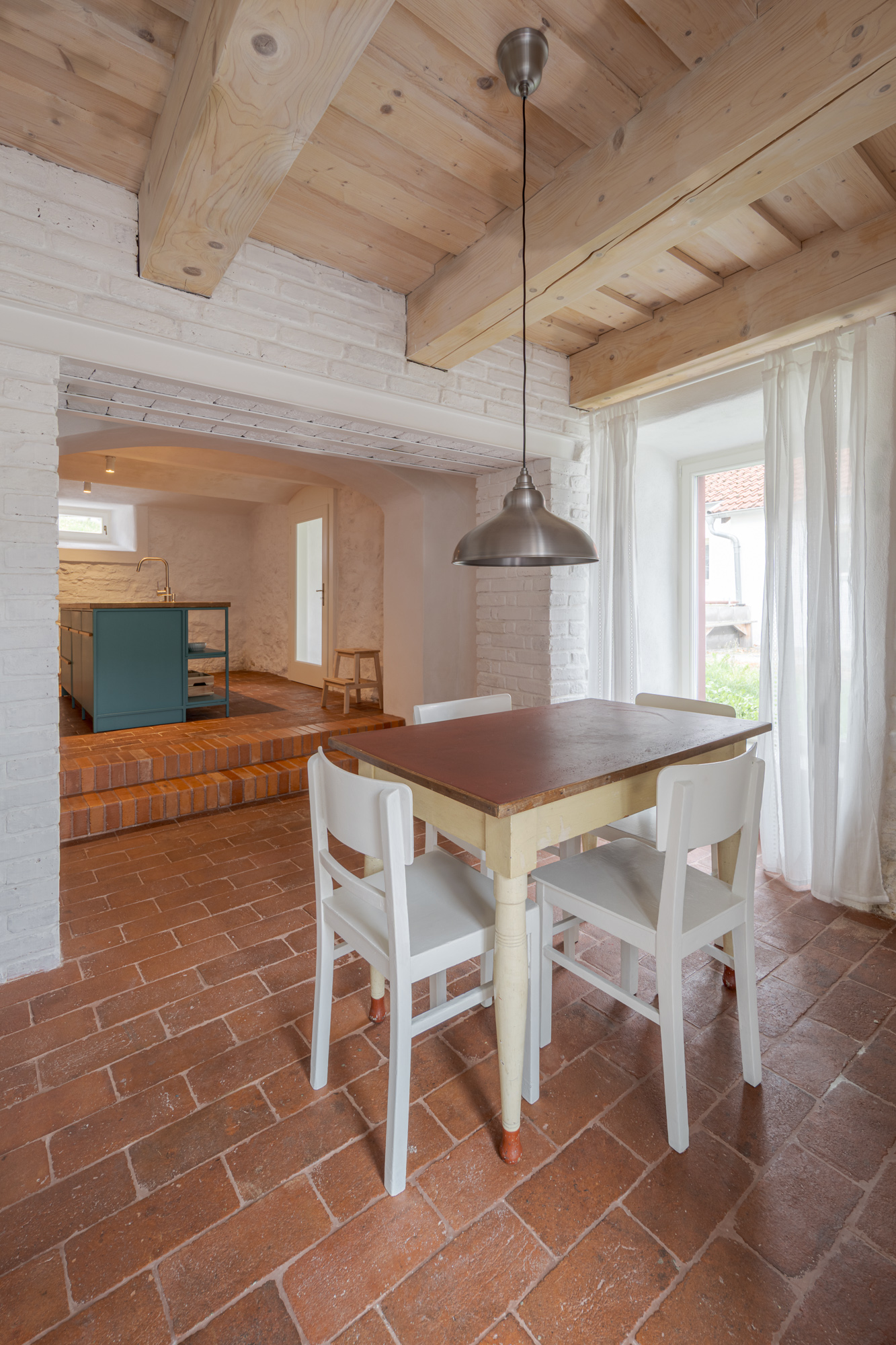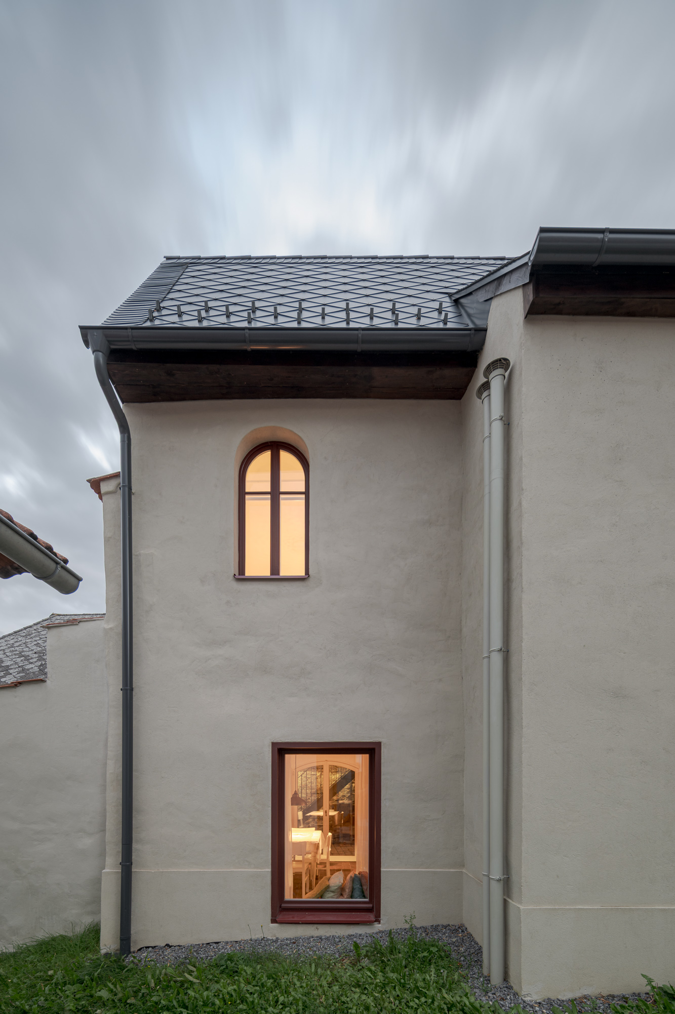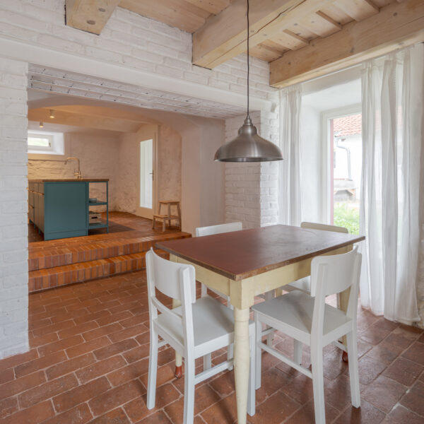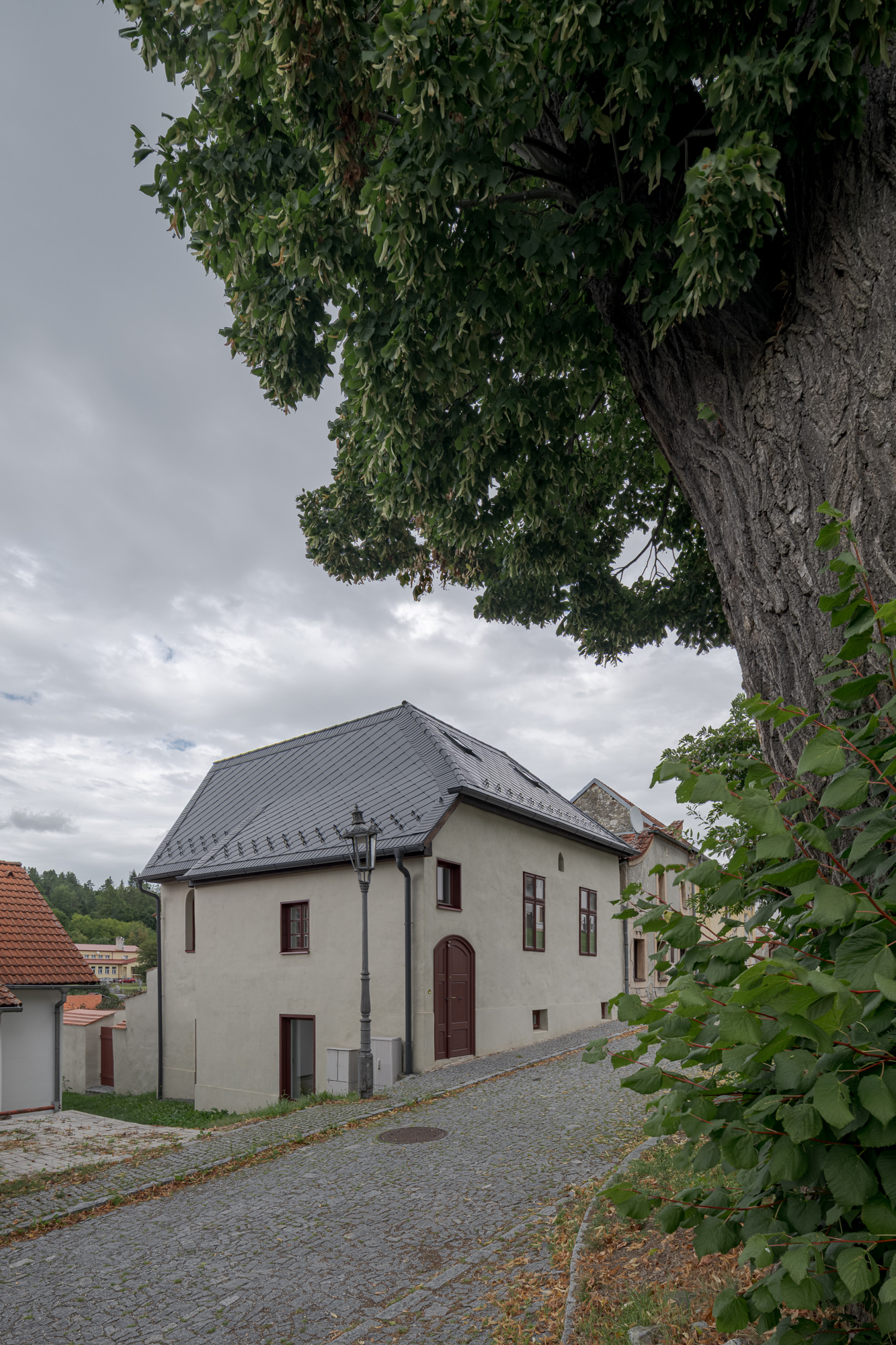 Rekonstrukce bývalé synagogy pod hradem Rabí proměnila opuštěný objekt v rodinné rekreační zázemí. Interiér propojuje tři podlaží – suterén se otevírá do dvora, v podkroví vznikly ložnice. Zachované detaily a nenápadně integrované technologie spojují památku s potřebami současného užívání.