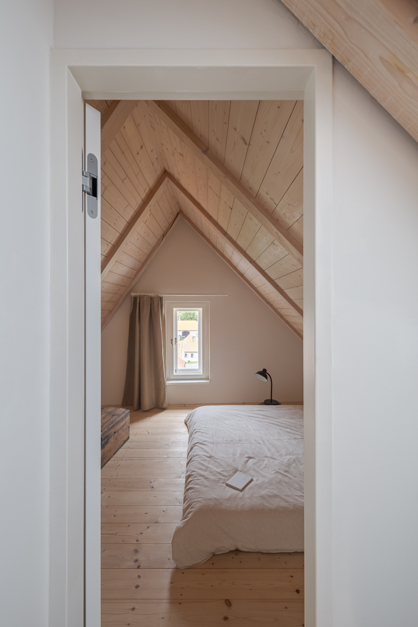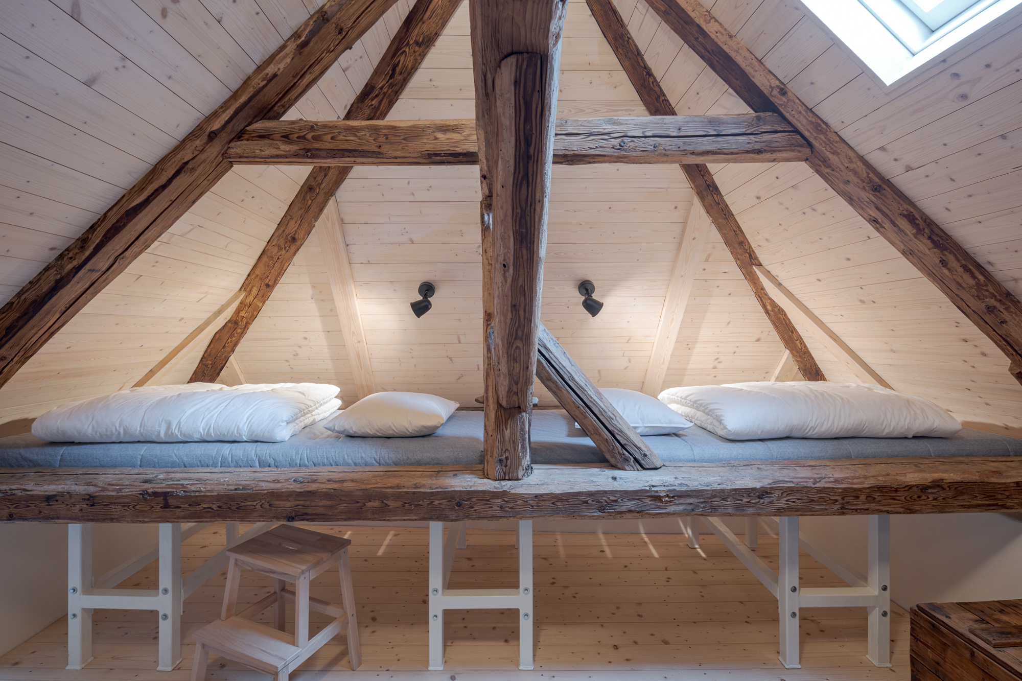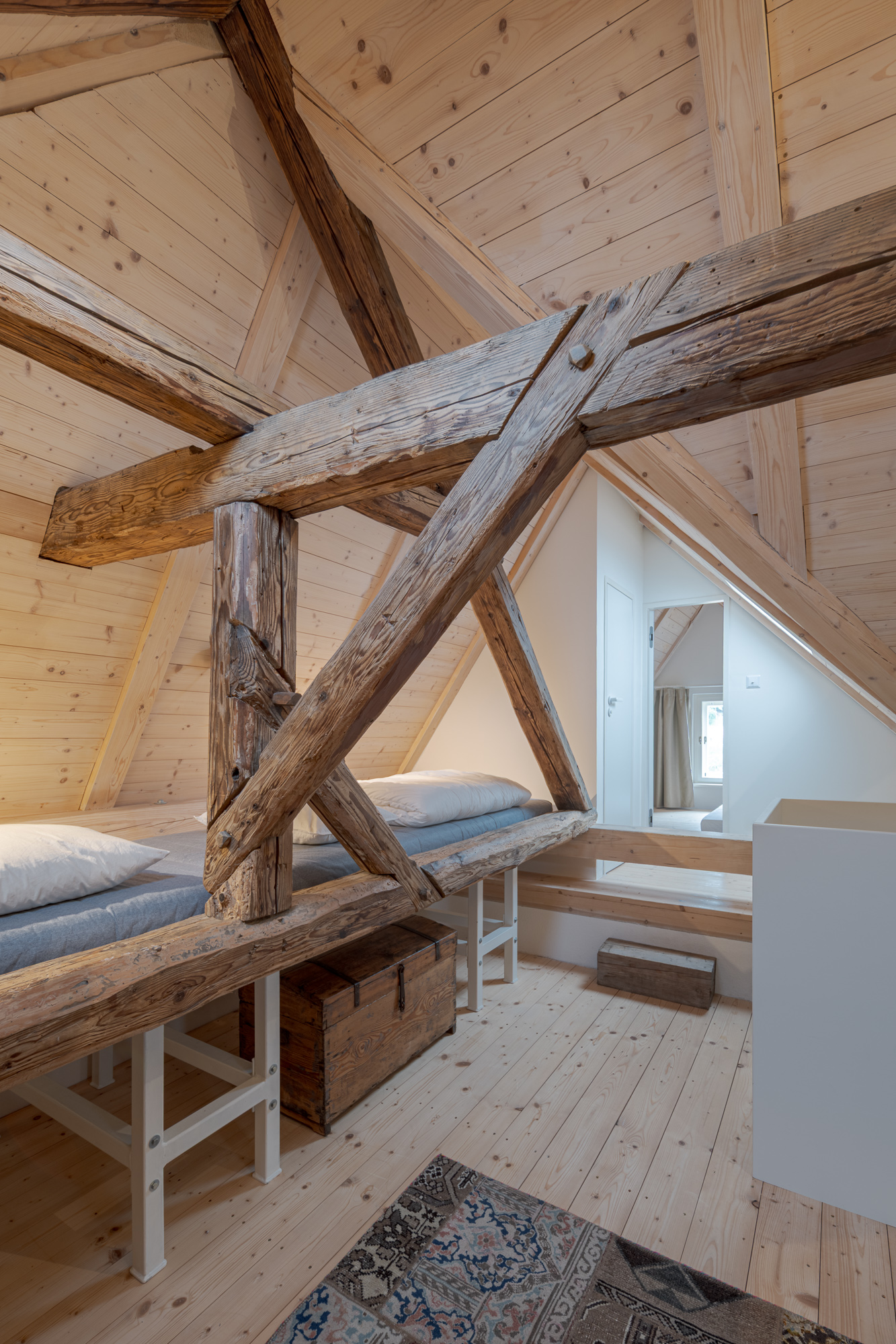 Rekonstrukce bývalé synagogy pod hradem Rabí proměnila opuštěný objekt v rodinné rekreační zázemí. Interiér propojuje tři podlaží – suterén se otevírá do dvora, v podkroví vznikly ložnice. Zachované detaily a nenápadně integrované technologie spojují památku s potřebami současného užívání.