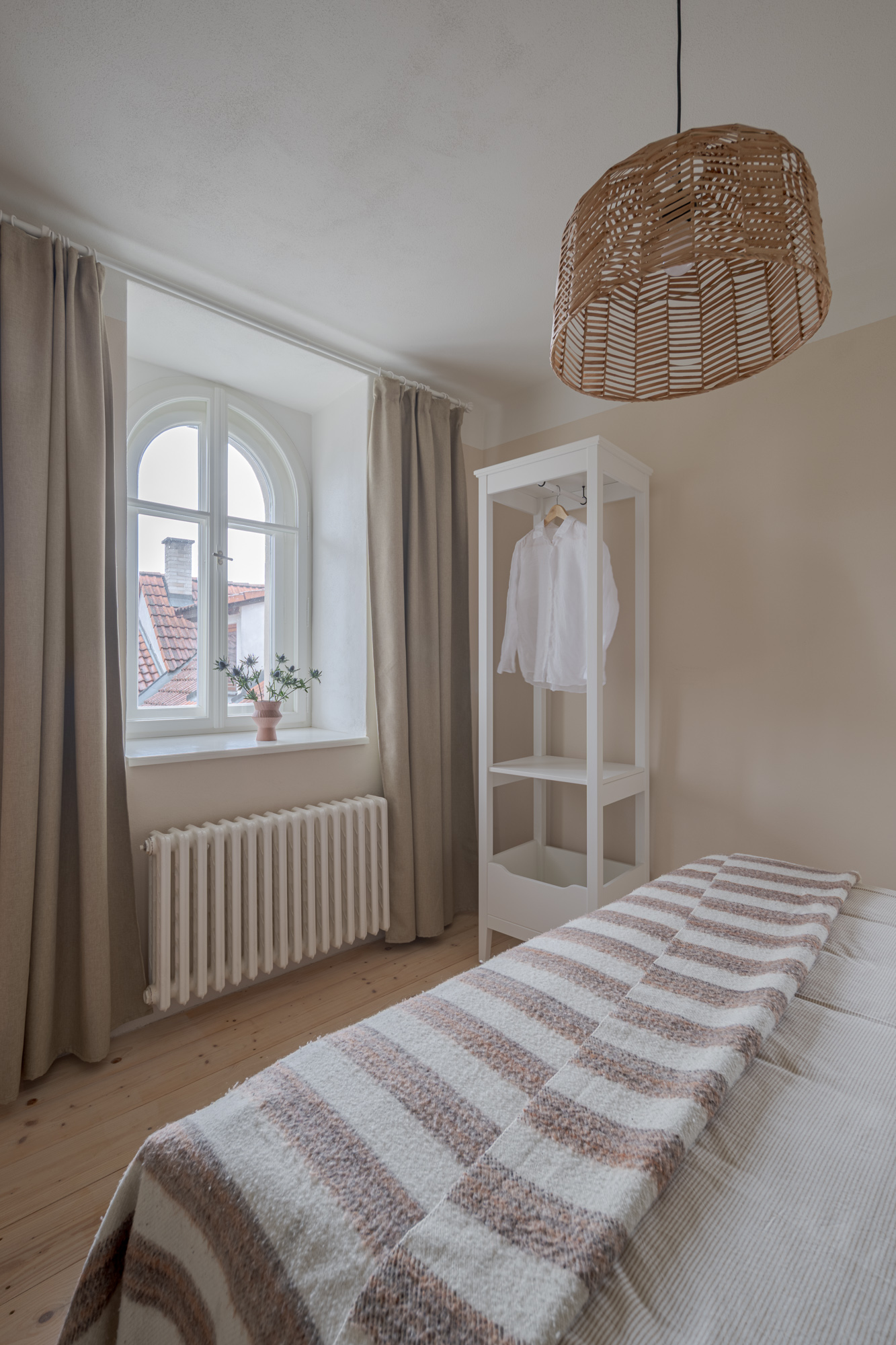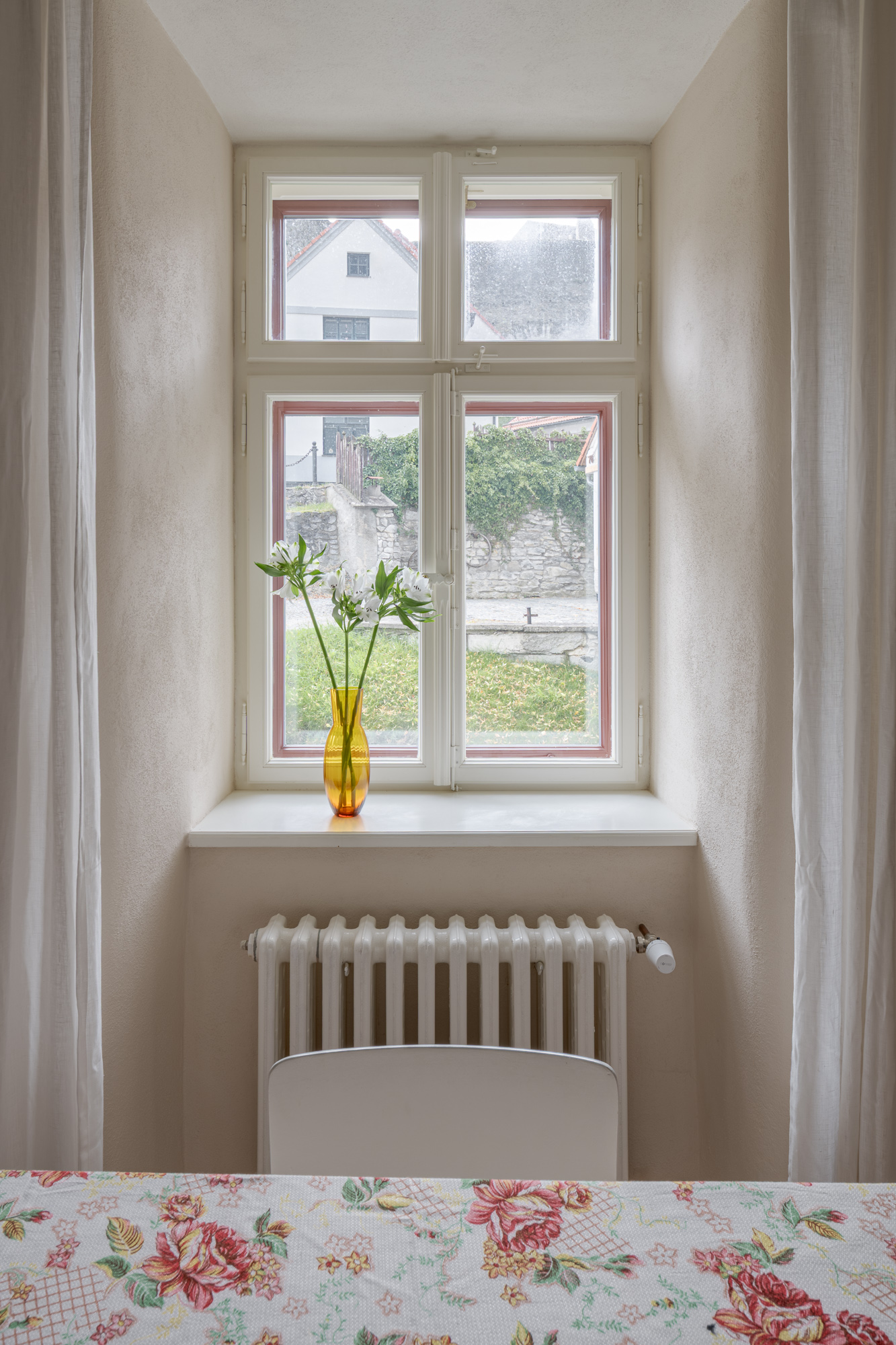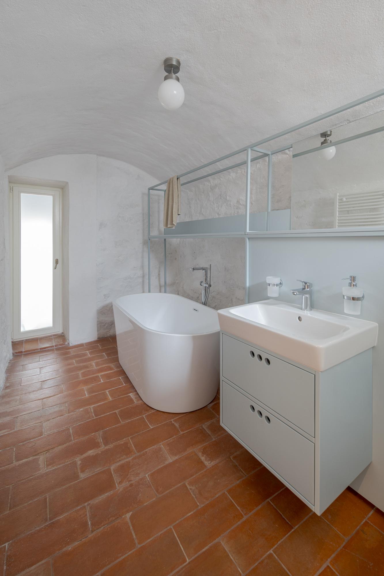 Hlavní zásahy probíhaly uvnitř. V suterénu na úrovni dvora vznikla kuchyně s jídelnou a koupelnou, propojená novým schodištěm s přízemím. Přízemí v úrovni ulice se stalo obytným prostorem s ložnicí a vlastní koupelnou. Z obývacího pokoje vede jedno schodiště na půdu se dvěma ložnicemi, druhé na dvůr s malou zahradou. Zachováno zůstalo půlkruhové okno v ložnici jako připomínka původní funkce stavby.